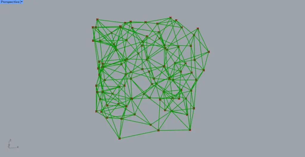 このように、Proximity 3D(G)で、各点から近くの点をつなぐ線の個数の数値を設定できます。